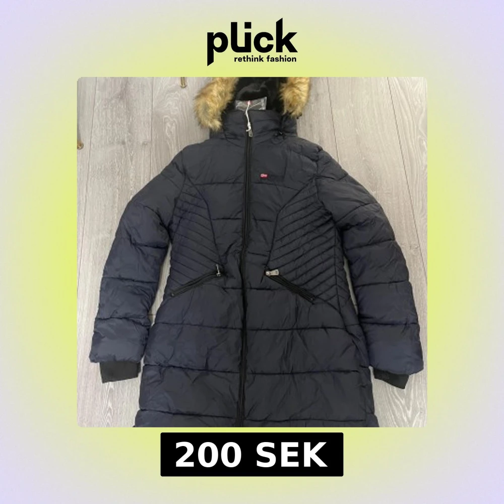 Svart dunjacka med pälskrage
