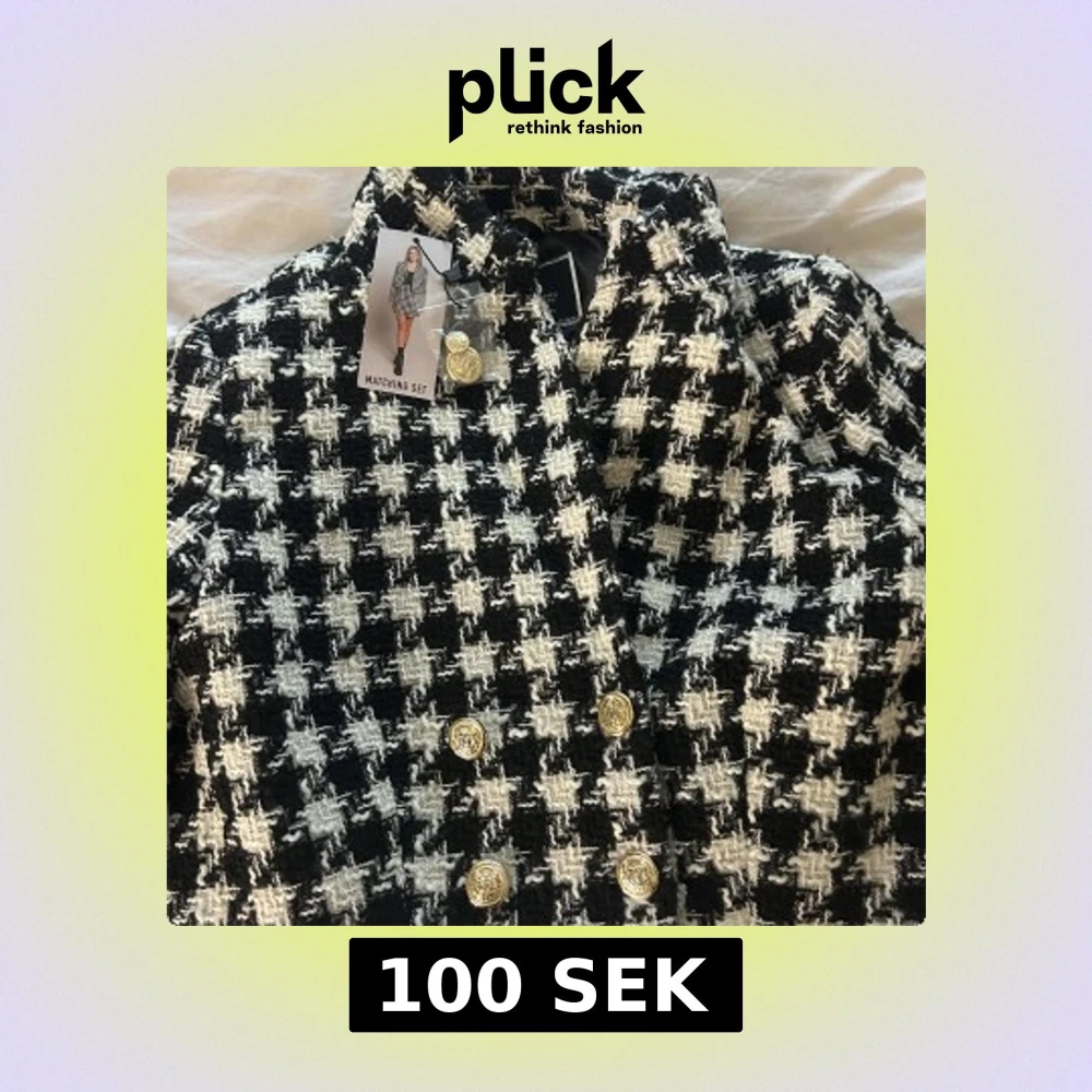 Snygg svartvit rutig kavaj från Amisu med guldknappar. Perfekt för dig som skaffat ny stil och vill ha lite mer old money vibes.☺️🫶🏻👼 Kavajen har en klassisk passform och är tillverkad i ett mjukt material.