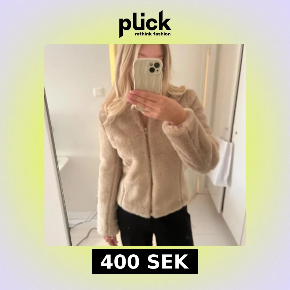 Säljer en snygg beige pälsjacka från Randigarutan. Jackan har en dragkedja framtill och är långärmad. Perfekt för att hålla sig varm och stilren under kyligare dagar.