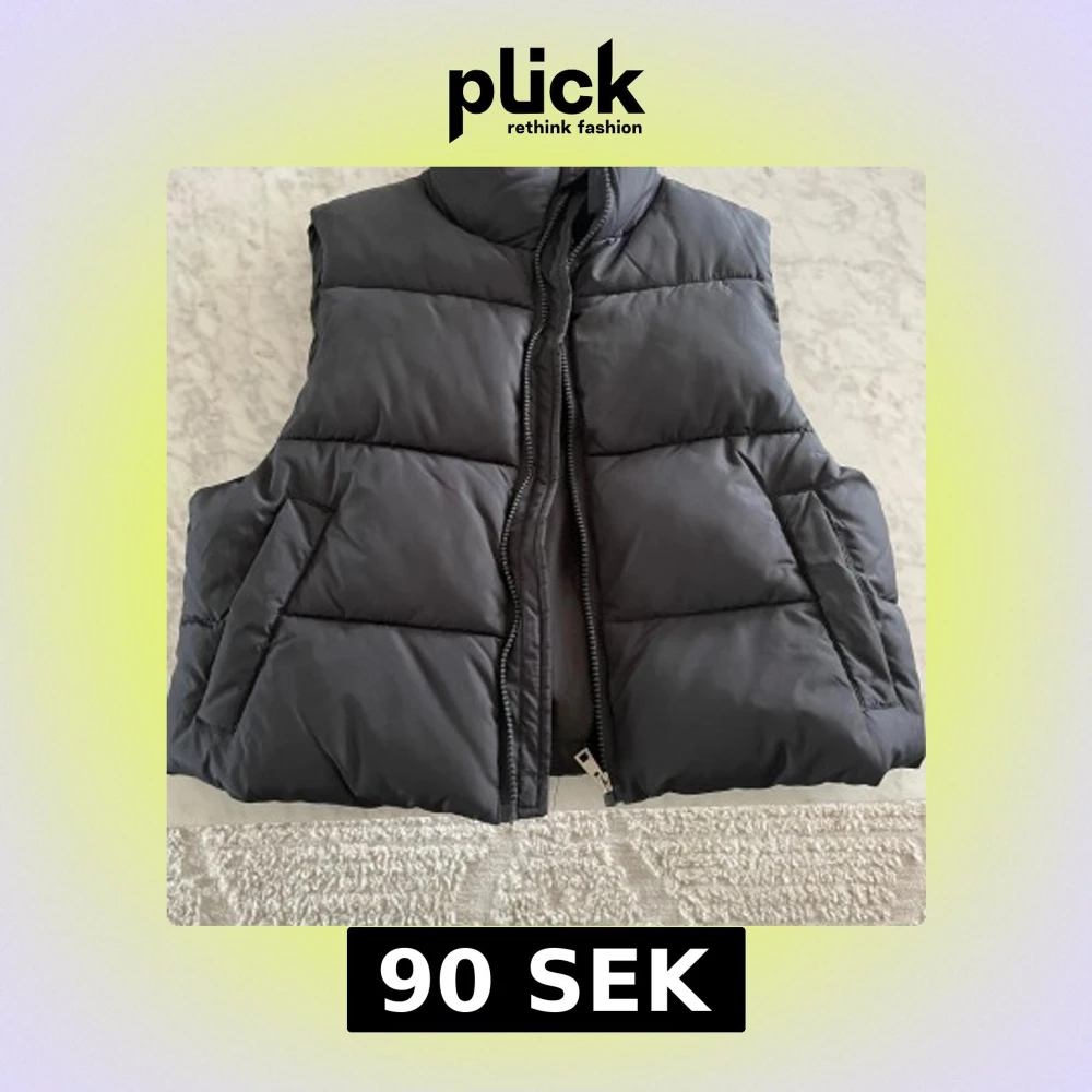 Säljer en svart dunväst från 157 med hög krage och dragkedja framtill. Västen har en enkel och stilren design med två snedställda fickor på sidorna. Perfekt att slänga över en hoodie eller tröja för extra värme.