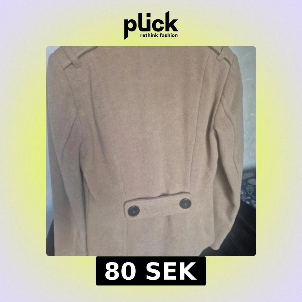 Snygg beige kappa med dubbelknäppning och ankardetalj på insidan. Tillverkad av 55% ull och 45% viskos, med foder i 100% polyester. Perfekt för kyliga dagar med stil. 🧥