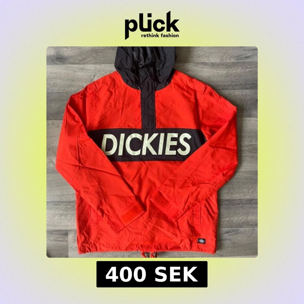 Snygg röd vindjacka från Dickies med svart huva och stor logga över bröstet. Jackan har lång ärm, dragkedja vid halsen och justerbar nederkant med snörning. Perfekt för dig som vill sticka ut med streetstyle-vibe.
