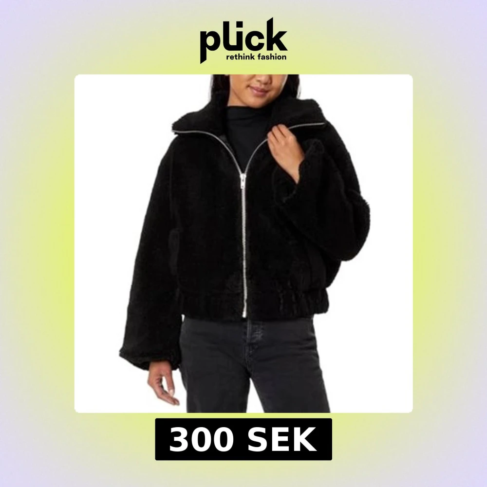 Mysig svart teddyjacka med oversized passform och hög krage. Jackan har en rejäl dragkedja framtill och breda ärmar för en chill look. Perfekt när du vill vara både varm och snygg. Passar till allt och är superenkel att styla. Lappen har blivit klippt och lämnat två revor i fodret. Se sista bilden.