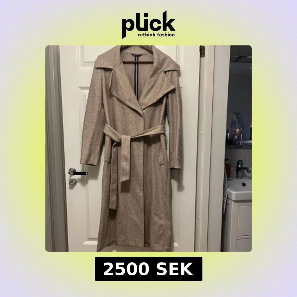 Jättefin lång kappa i beige från Filippa K. Nypris är cirka 8000kr. Den är använd men inget man märker. Storleken är M. 80% bomull, 20% polymid