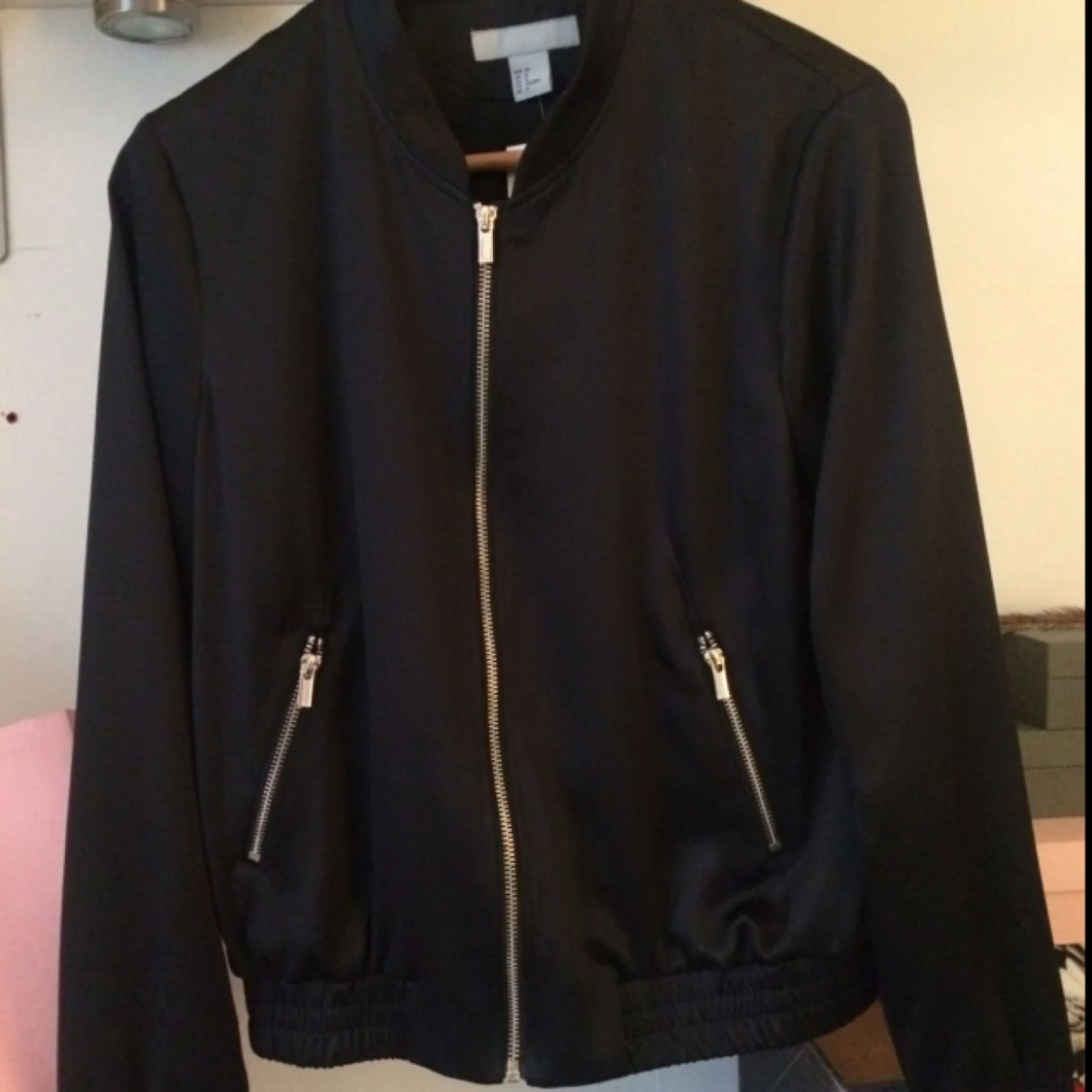 Helt ny sidenjacka från hm. Aldrig använd, prislappen sitter kvar. Köpt för 250 på rean. Perfekt som vårjacka eller festjacka