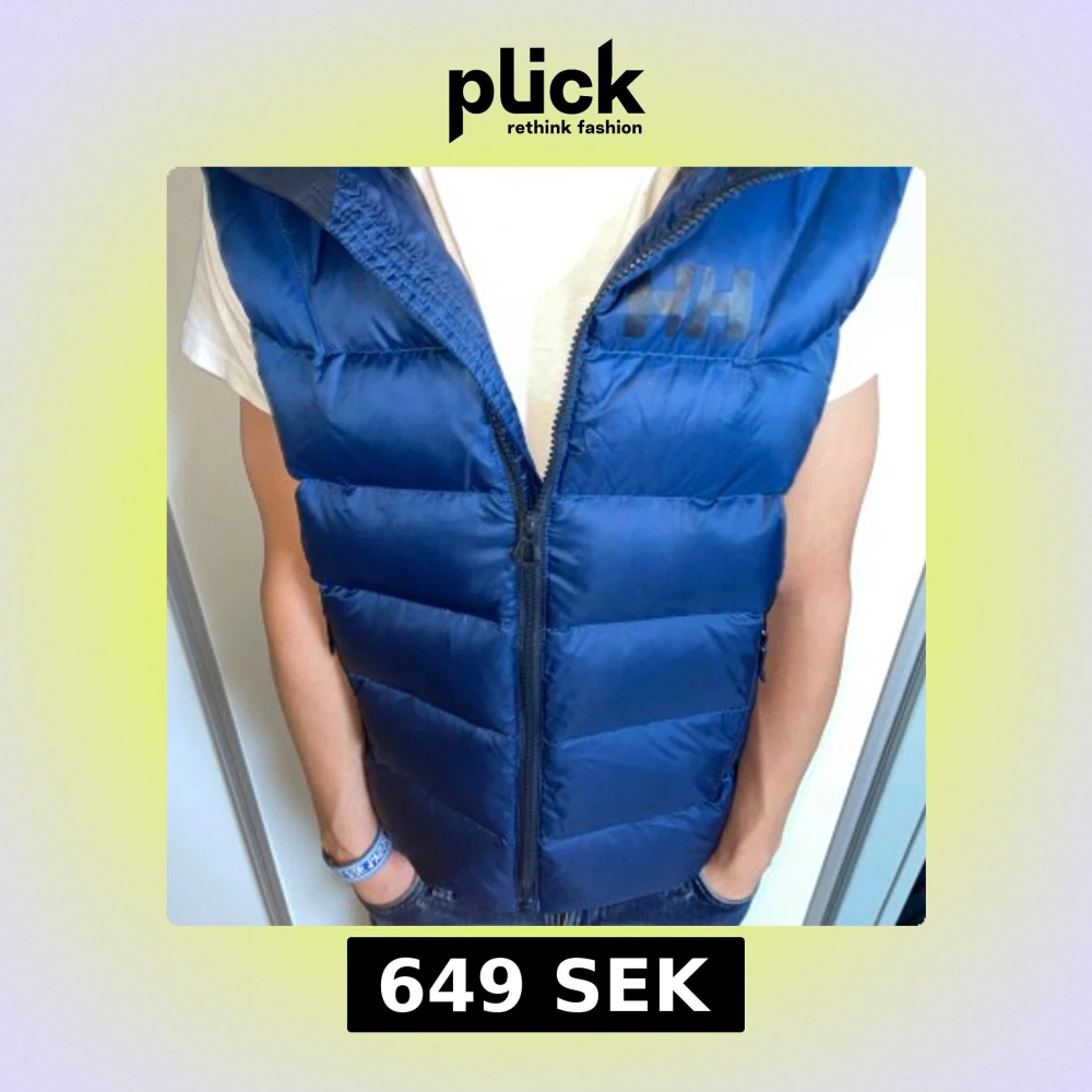 Snygg blå dunväst från Helly Hansen med markerad logga på bröstet. Västen har quiltad design, dragkedja framtill och hög krage. Perfekt för lager-på-lager och ger en sportig vibe. Materialet är glansigt och känns lätt men ändå värmande.