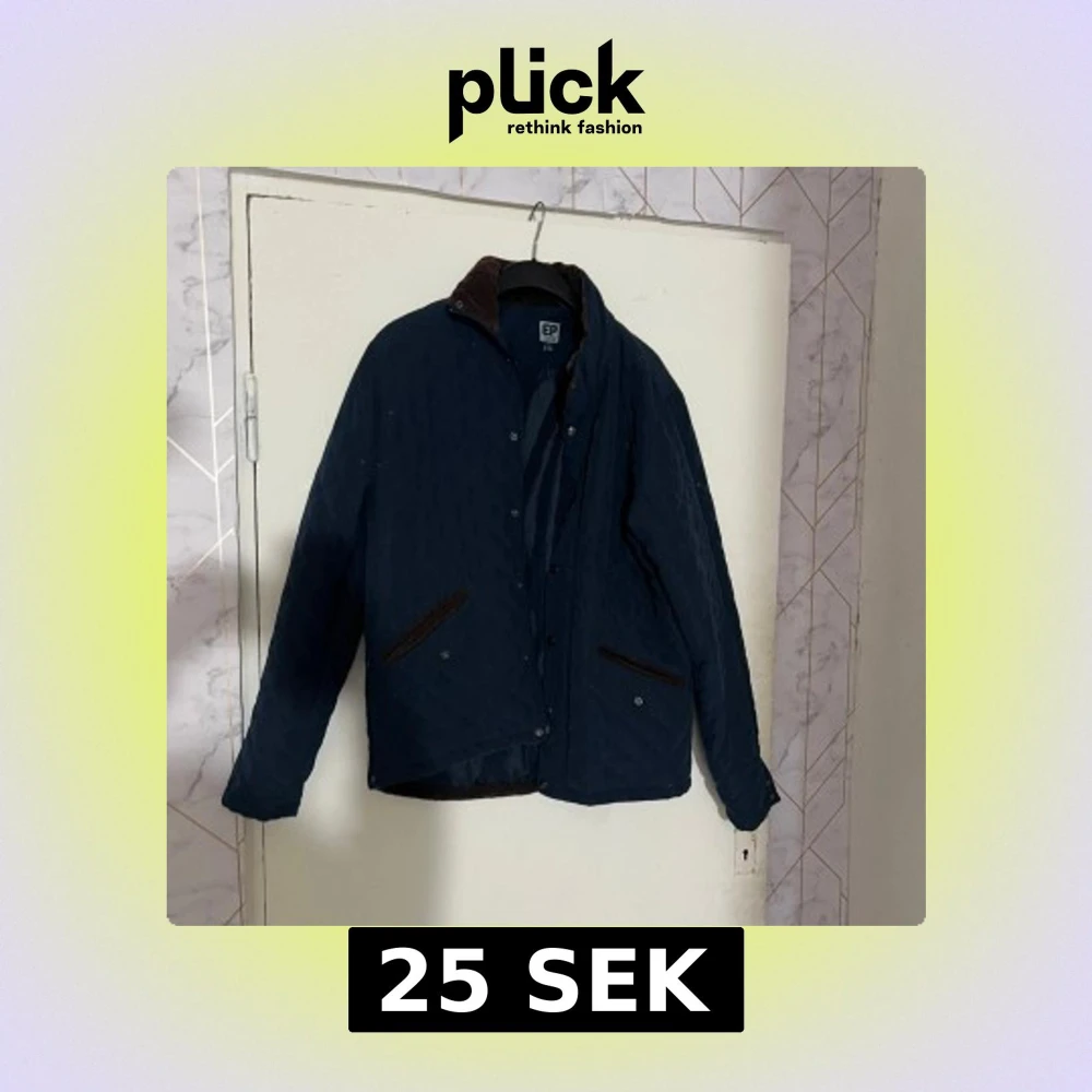 Säljer en mörkblå quiltad jacka från EP Collection med bruna detaljer vid krage och fickor. Jackan har lång ärm med förstärkta armbågar och knäppning framtill. Perfekt för kyligare dagar.