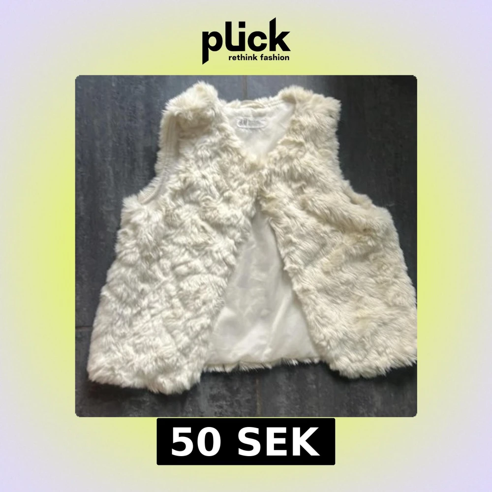 Fluffig och mjuk vit pälsväst från H&M i storlek 140. Västen har ett stilrent snitt utan knäppning och är helfodrad med slät insida.