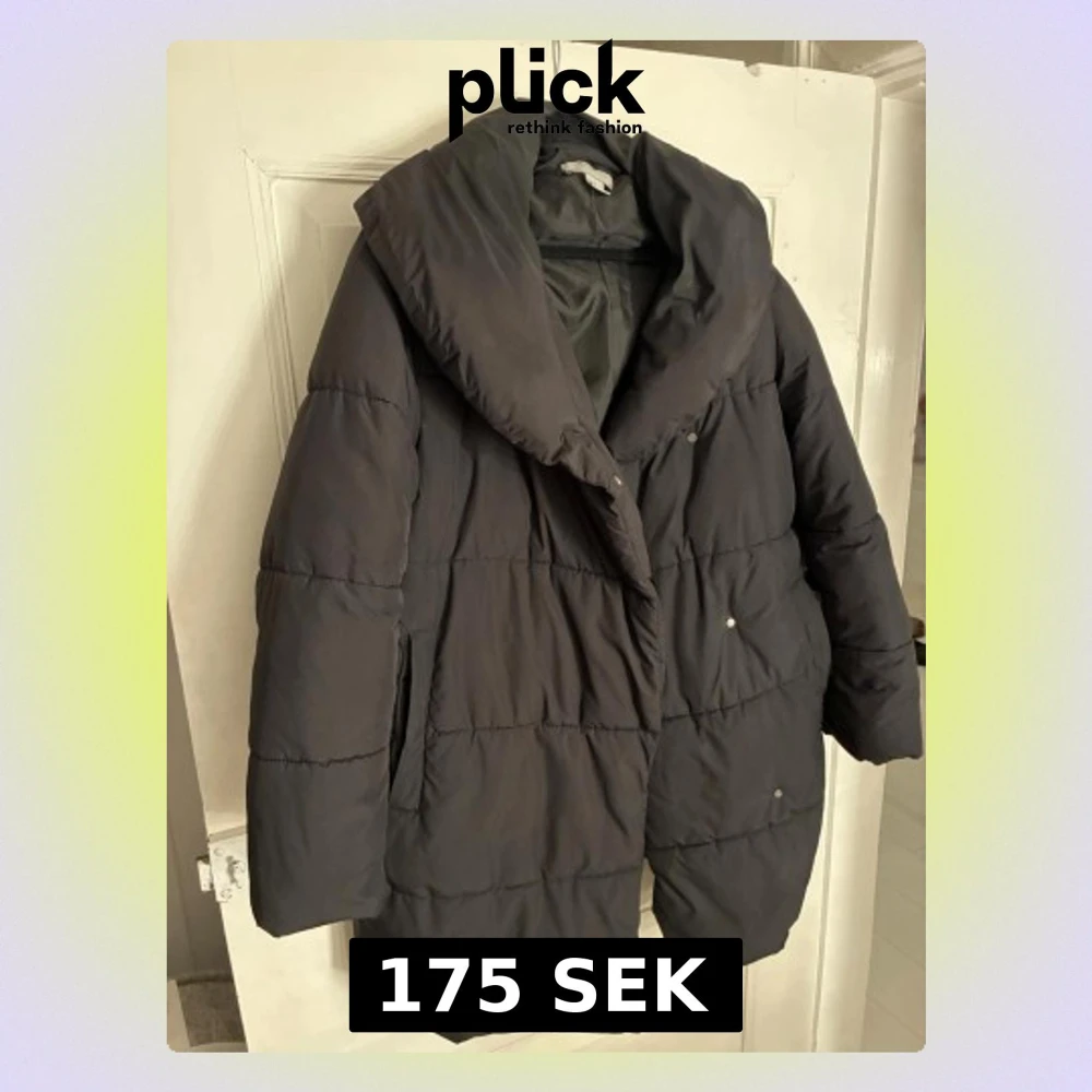 Säljer en svart pufferjacka från H&M i storlek 38. Jackan har en oversized krage, tryckknappar och två fickor på sidorna. Perfekt för kalla dagar med sin fluffiga och quiltade design. Enkel och stilren look som funkar till det mesta.