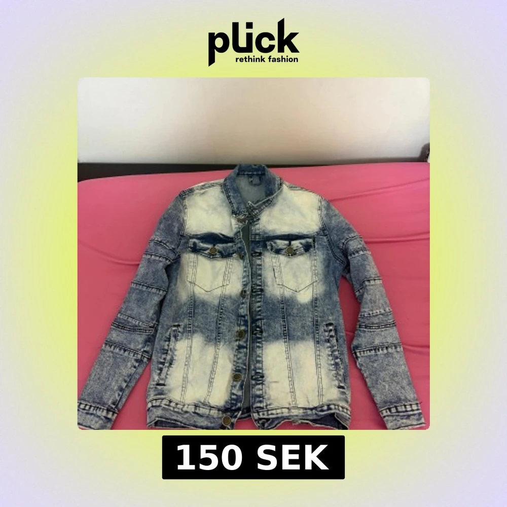 Snygg slim fit jeansjacka från H&M i tvättad blå och vit denim. Jackan har klassiska bröstfickor med knappar, långa ärmar och coola sömdetaljer. Perfekt för dig som gillar streetstyle och vill ha en jacka med attityd.