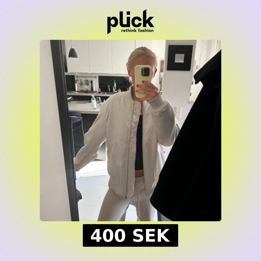 Säljer en efterfrågad vit bomberjacka med oversized passform. Jackan har ribbade muddar vid ärmslut och krage, dragkedja framtill och två snedställda fickor. Perfekt för dig som gillar en clean och stilren look. Materialet känns mjukt och lätt, troligtvis polyester. SÅ FIN och högt tryck. Pris går att diskutera