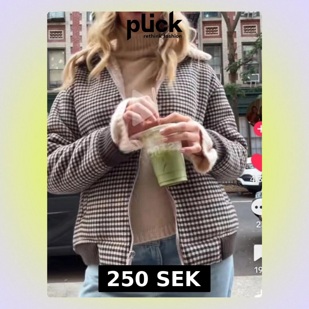 Brun och vit rutig teddyjacka