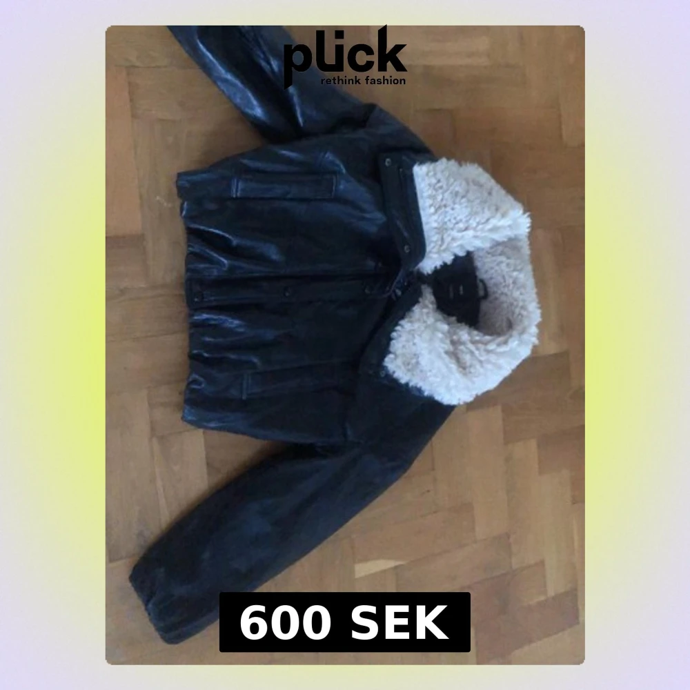 Säljer en svart skinnjacka från Mango med stor, fluffig teddykrage i beige. Jackan har långa ärmar, fickor framtill och stängs med knappar. Perfekt för dig som vill ha en cool och mysig look under höst och vinter.