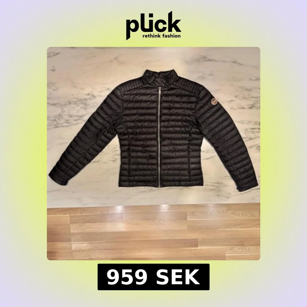 Stilren och lätt dunjacka från Colmar Originals, färg Nero Iron (svart). Klassisk modell utan huva med ståkrage och logga på ärmen. Två fickor med dragkedja. Mycket fint skick, inga fläckar eller skador. Nypris ca 4 000 kr. Passar perfekt för höst/vår – snygg både till vardags och på jobbet.