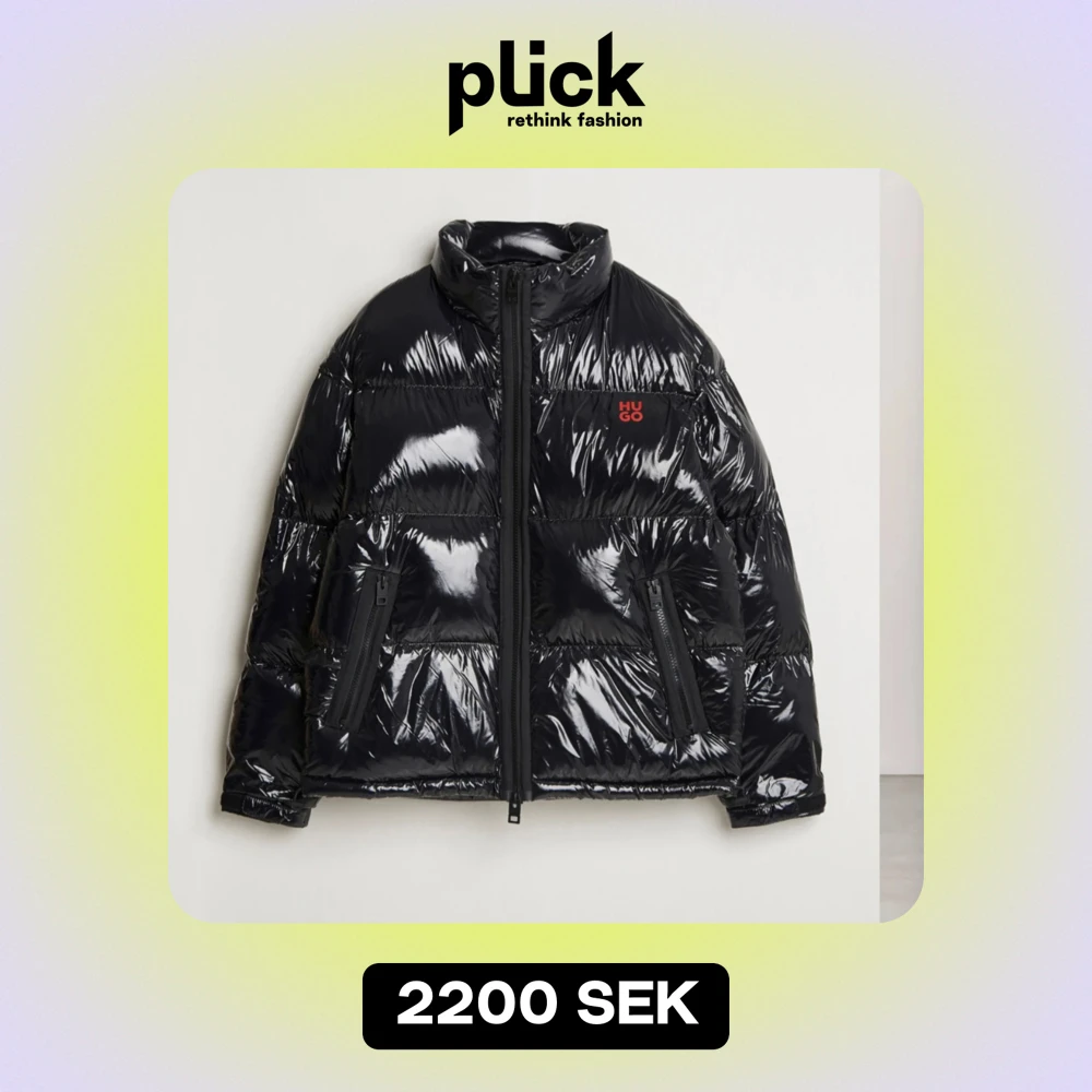 Säljer en snygg svart pufferjacka från Hugo i glansigt material. Jackan har en hög krage och dragkedja framtill. Perfekt för kalla dagar och har en cool, modern look. Den är långärmad och har en röd Hugo-logga på bröstet. Passar perfekt för både höst och vinter. Nypris 4900kr, mitt pris 2200