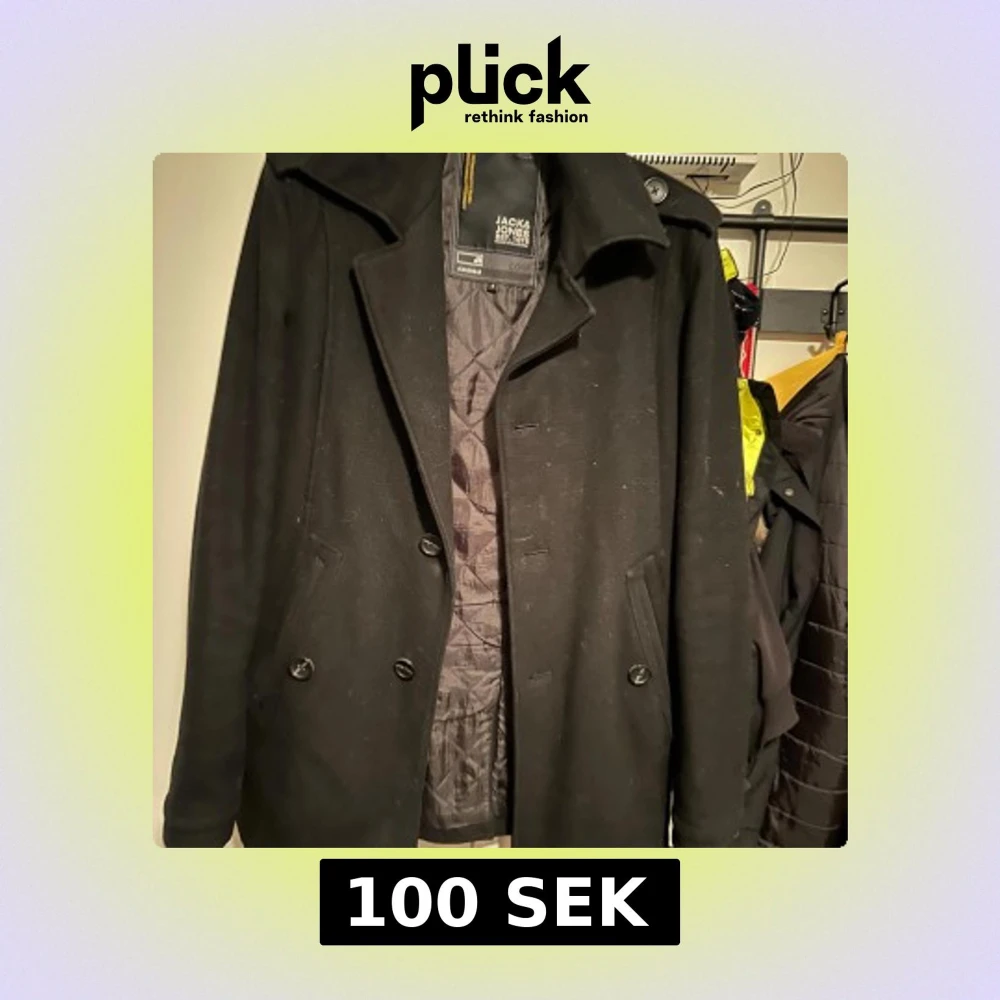 Säljer en svart rock från Jack & Jones i storlek S. Jackan har klassisk krage, knäppning med knappar och två fickor framtill. Insidan är quiltad för extra värme och den har en stilren look som funkar till många outfits. Kan ev behövas en tvätt då ser ut som de finns något bak på jackan.