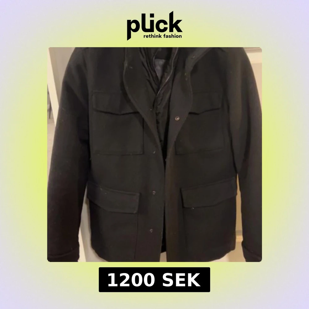 Stilren svart rock från Jack & Jones i storlek S. Jackan har fyra stora fickor framtill, quiltat innerfoder och stängs med både dragkedja och knappar. Perfekt för dig som vill ha en klassisk look med modern touch.