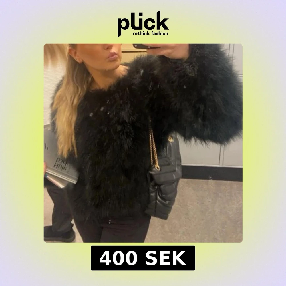 Säljer en svart pälsjacka från Hollies i äkta fjäder. Den är helsvart, har lång ärm och en oversized look. Fodrad insida för extra komfort. Superfin!