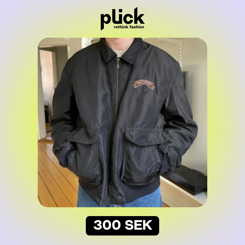 Harley Davidson jacka i XXL, jag är en L i vanliga fall så funkar då om man vill ha de lite oversize.