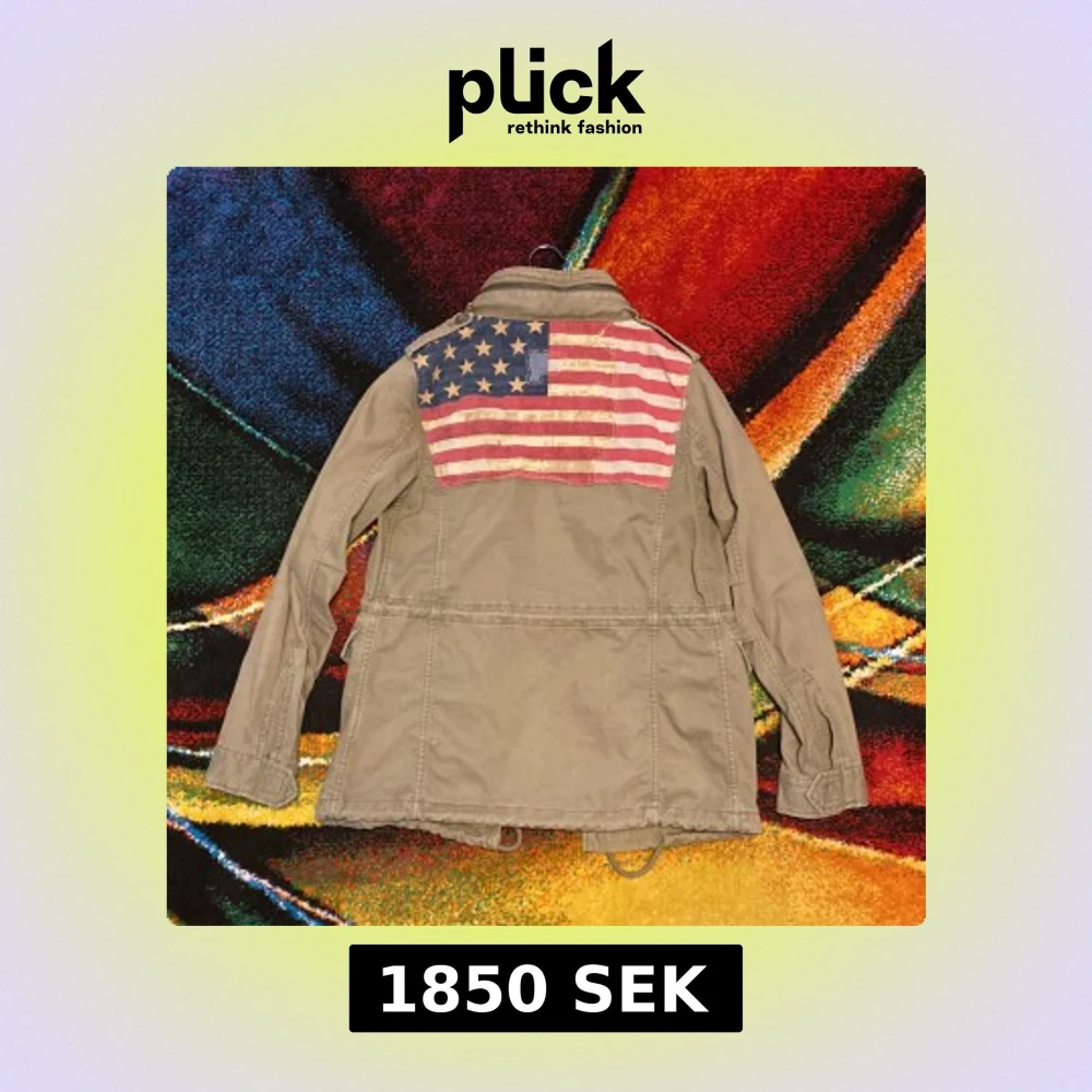 Snygg olivgrön parkajacka från Denim & Supply Ralph Lauren med coolt USA-flagga-tryck på ryggen. Jackan har flera fickor, snörning i midjan och detaljer med dragkedja vid kragen. Perfekt för dig som gillar unika plagg och unika plagg. Storlek S väldigt svåra att hitta skick som ny 10/10 skick Dm för fler bilder eller frågor 🪖🫒⚡️