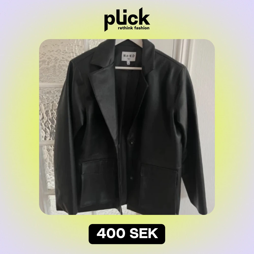 Läderjacka från NA-KD i storlek 38. Sprillans ny, tyvärr då den är lite för oversized för mig:( (är vanligtvis en XS) Köpt secondhand, den förra tjejen hade inte heller använt den innan