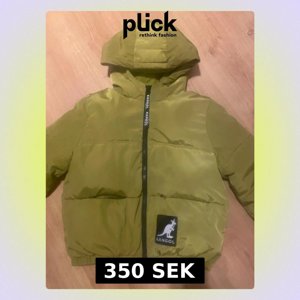 Säljer en olivgrön pufferjacka från Kangol med huva och svart logotyp på bröstet. Jackan har en rak passform, hel dragkedja framtill och elastisk nederkant. Materialet är syntet och jackan är perfekt för kyliga dagar. Finns inte längre att köpa då den var limited edition