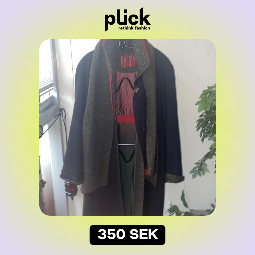 Säljer en elegant mörk kappa från Goldix med tillhörande schal.Den har en quiltad röd insida och en stilren design med knappar framtill. Perfekt för höst och vinter, med en klassisk look som passar både till vardags och fest.