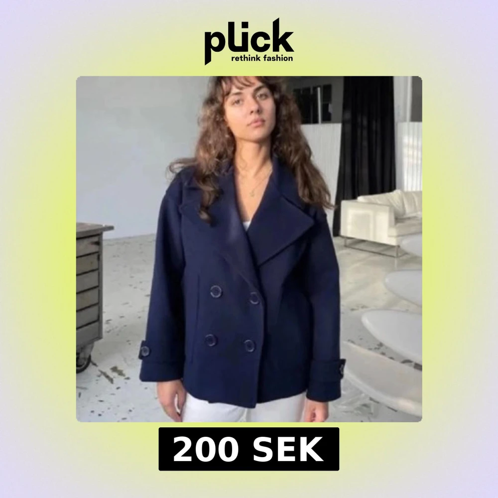 sjukt snygg marinblå kappa från design by si, passar xs/s! 💞💞 ganska använd därav priset! lappen på sista bilden har även lossnat lite men inget som syns när man har på sig den såklart 😇