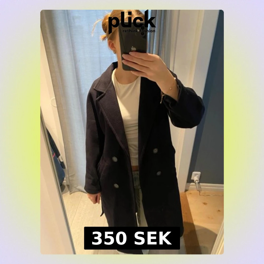 Säljer en mörkblå kappa i mycket fint skick. Kappan är lång och har raka ärmar samt två fickor. (Jag är 170cm lång)