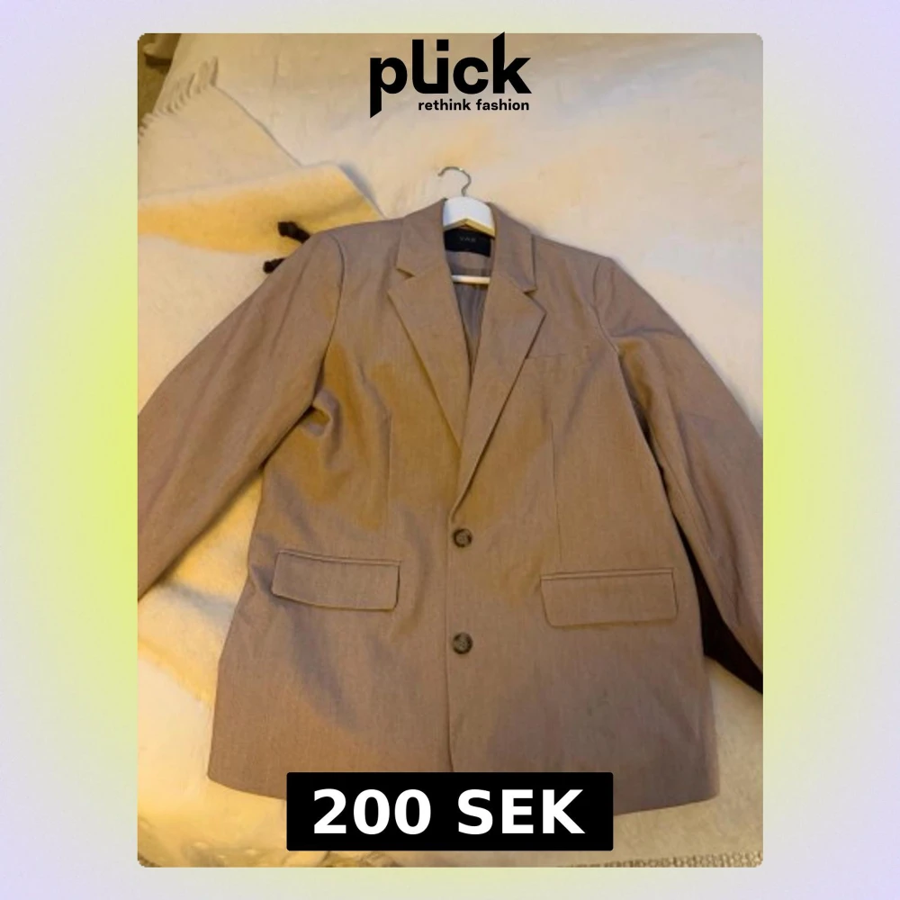 Säljer en beige kavaj från YAS med klassisk krage, två knappar framtill och fickor med lock. Kavajen har en rak passform och är fodrad på insidan. Perfekt för dig som gillar stilrena och tidlösa plagg.