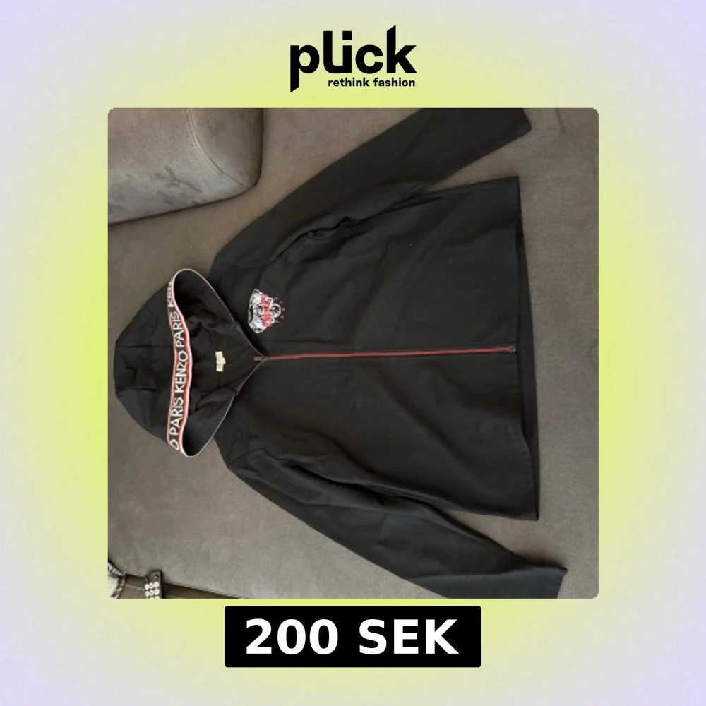 Svart hoodiejacka från Kenzo med ikoniskt tigertryck och logga på bröstet. Huva med bredt band där det står 'KENZO PARIS' i vitt och rött. Jackan har hel dragkedja framtill och är tillverkad i mjuk bomull. Perfekt för en streetstyle-look.