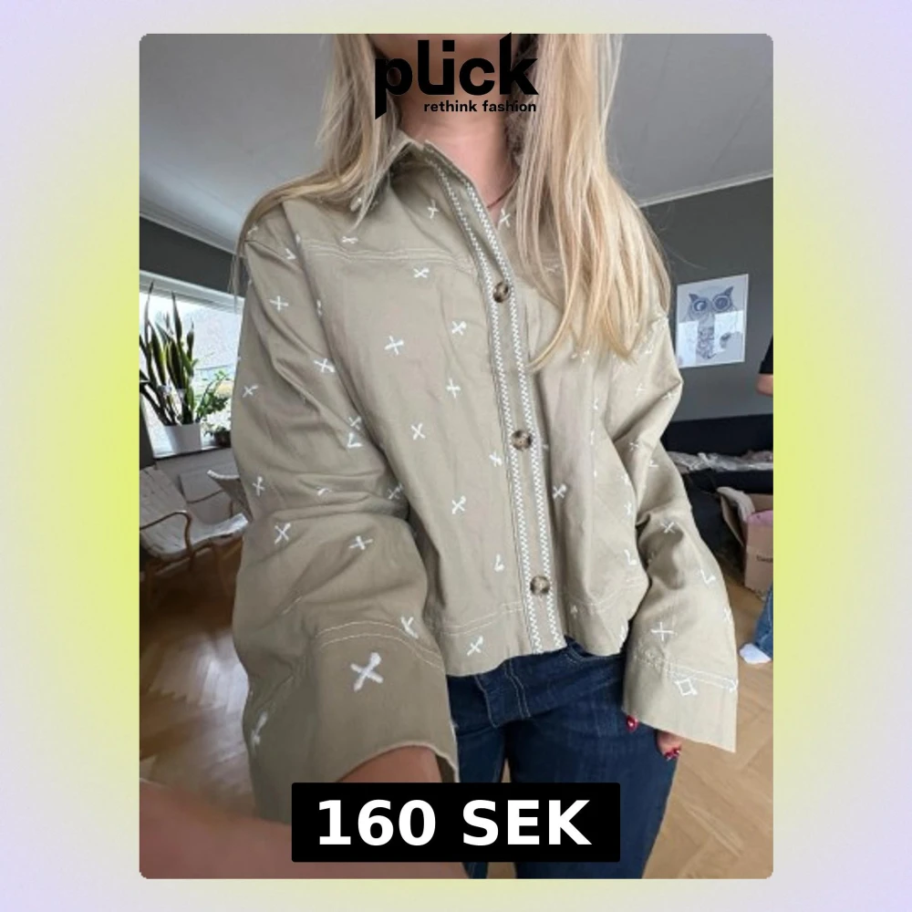 Beige overshirt jacka med broderi
