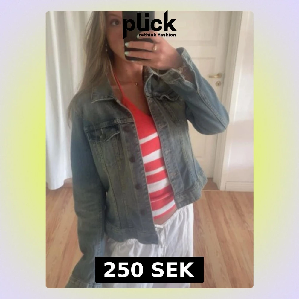 Säljer en klassisk blå jeansjacka med knappar framtill och två bröstfickor. Jackan har en tidlös design med krage och är perfekt att slänga över en t-shirt eller hoodie. Materialet är slitstarkt denim och jackan har en normal passform med långa ärmar.