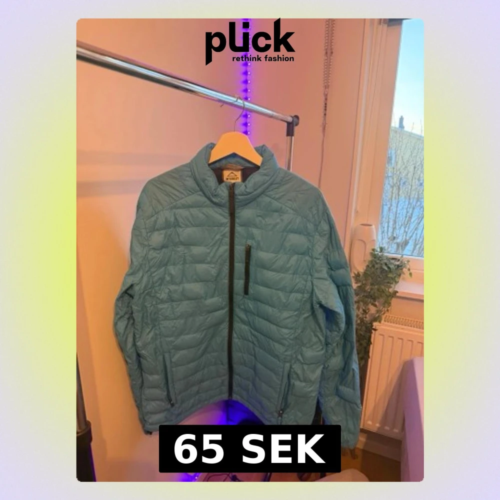 Säljer en ljusblå pufferjacka från McKinley med quiltad design och hel dragkedja framtill. Jackan har en bröstficka med dragkedja, två sidofickor och en hög krage. Perfekt för kyliga dagar och enkel att matcha med olika outfits.