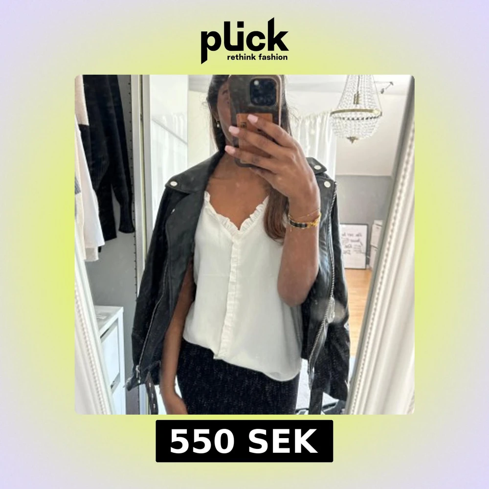 Säljer en svart skinnjacka i klassisk bikerstil med silvriga dragkedjor, fickor och bälte i midjan. Jackan har bred krage och coola detaljer. Superfint skick, priset går att diskutera vid snabb affär!