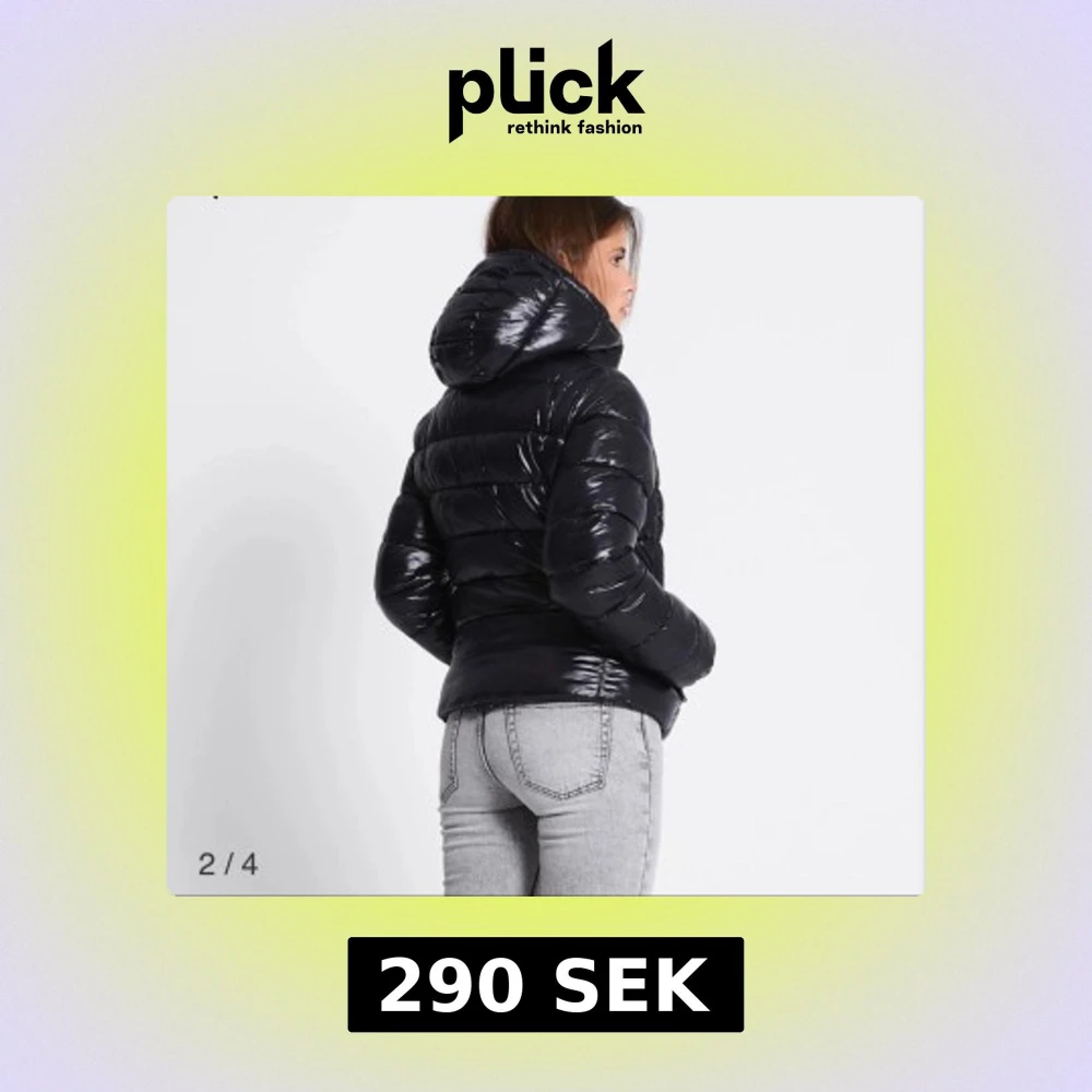 Svart glansig pufferjacka med huva