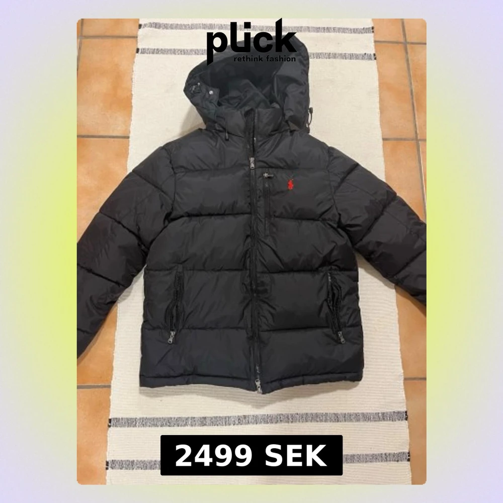 Svart pufferjacka från Polo Ralph Lauren med huva och röd logga på bröstet. Jackan har flera dragkedjefickor, quiltad design och justerbar huva. Perfekt för kalla dagar och har en riktigt schysst still. Storlek S