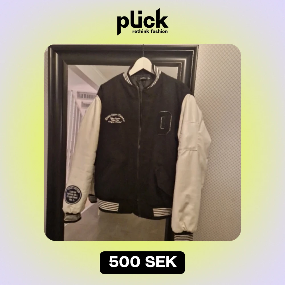 LIMITED EDITION VARSITY BOMBER JACKET storlek EU FR 38 och EU DE 36. Svart/vit. Mycket fint skick! Inga skråmor, hel, regn och snygg! Har tagits väl omhand.
