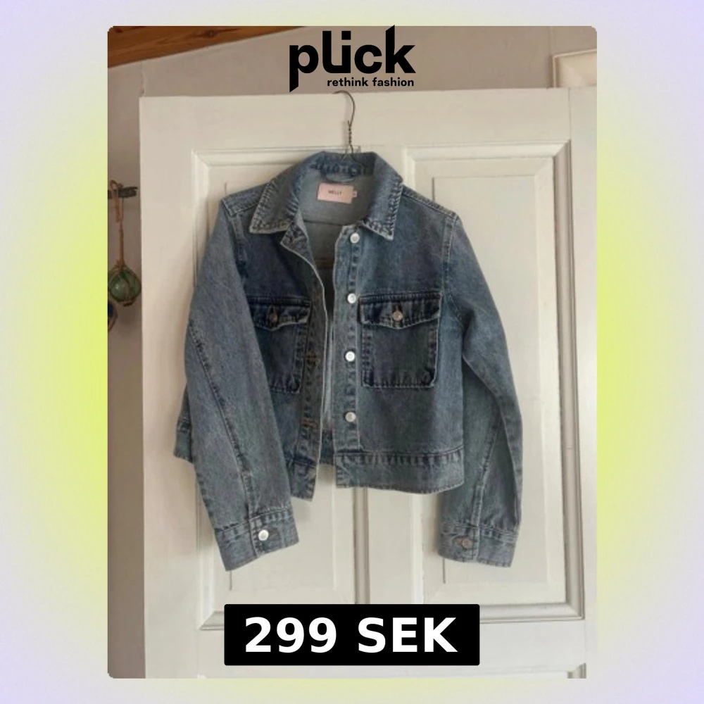 Säljer en klassisk blå jeansjacka från Nelly i storlek XS. Jackan har två bröstfickor med knappar, silverfärgade knappar framtill och vid ärmslut samt en rak, något croppad passform. Perfekt att slänga över en hoodie eller t-shirt för en chill look.