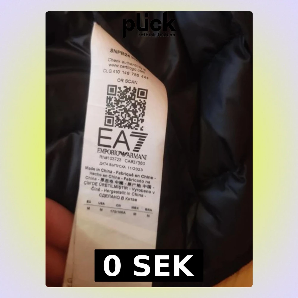 Svart pufferjacka från EA7 Emporio Armani med huva och guldfärgat logotryck på bröstet. Jackan har quiltad design, dragkedja framtill och långa ärmar. Perfekt för dig som vill ha en snygg och stilren look under kyliga dagar. Pris kan diskuteras då jag vill bli av med den