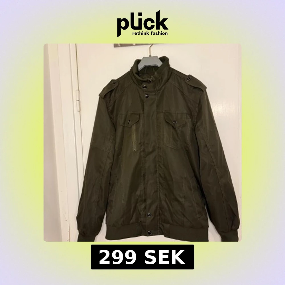Snygg olivgrön jacka med knappar och dragkedja. Den har långa ärmar och ribbade muddar vid ärmslut och nederkant. Perfekt för höst och vår med en stilren look.