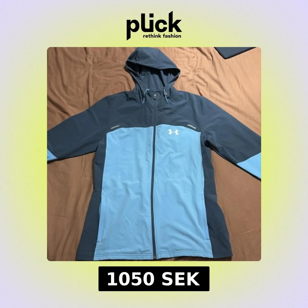 Säljer en snygg blå och grå vindjacka från Under Armour. Jackan har en dragkedja framtill och en praktisk huva. Perfekt för utomhusaktiviteter med sin sportiga design och bekväma passform. Pris kan diskuteras