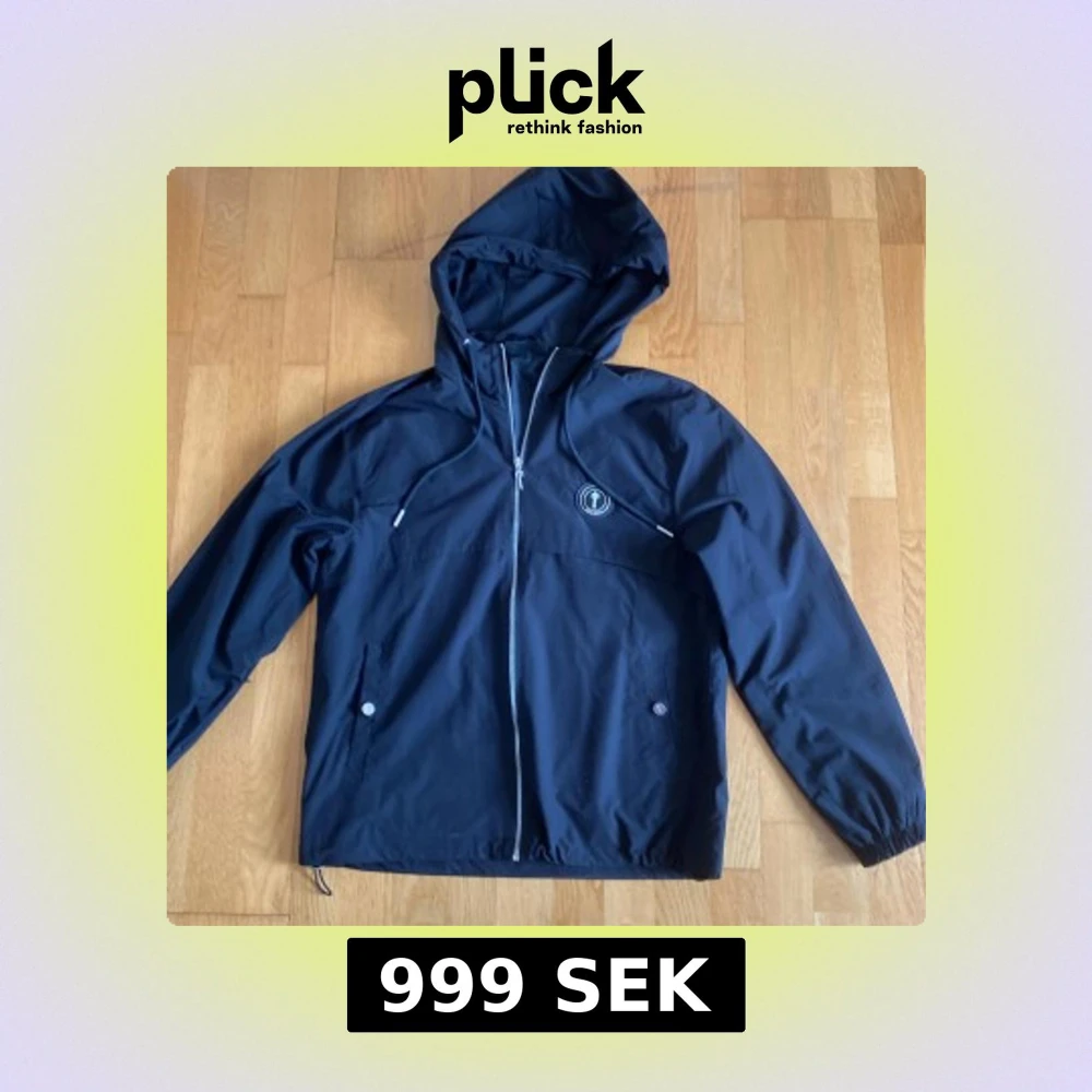 Svart vindjacka från Trapstar med huva och dragkedja framtill. Jackan har snörning vid huvan, två fickor med knappstängning och Trapstar-logga broderad på ryggen. Perfekt för dig som gillar streetwear och vill sticka ut med snygga detaljer.