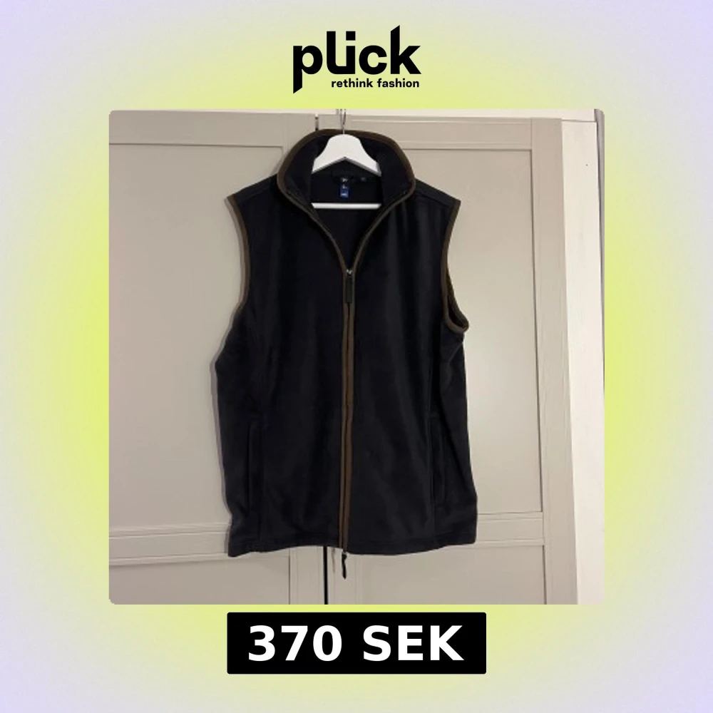 Snygg svart fleeceväst med dragkedja och bruna detaljer. Perfekt för lager-på-lager under kyliga dagar. Västen har en hög krage och två fickor framtill.