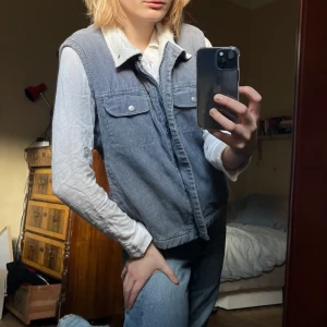 Fodrad väst med yttertyg i manchester. Köpt second hand så använt skick (dragkedjan har släppt ca 0,5 cm i knäppningen men det syns inte). Annars mycket fin!