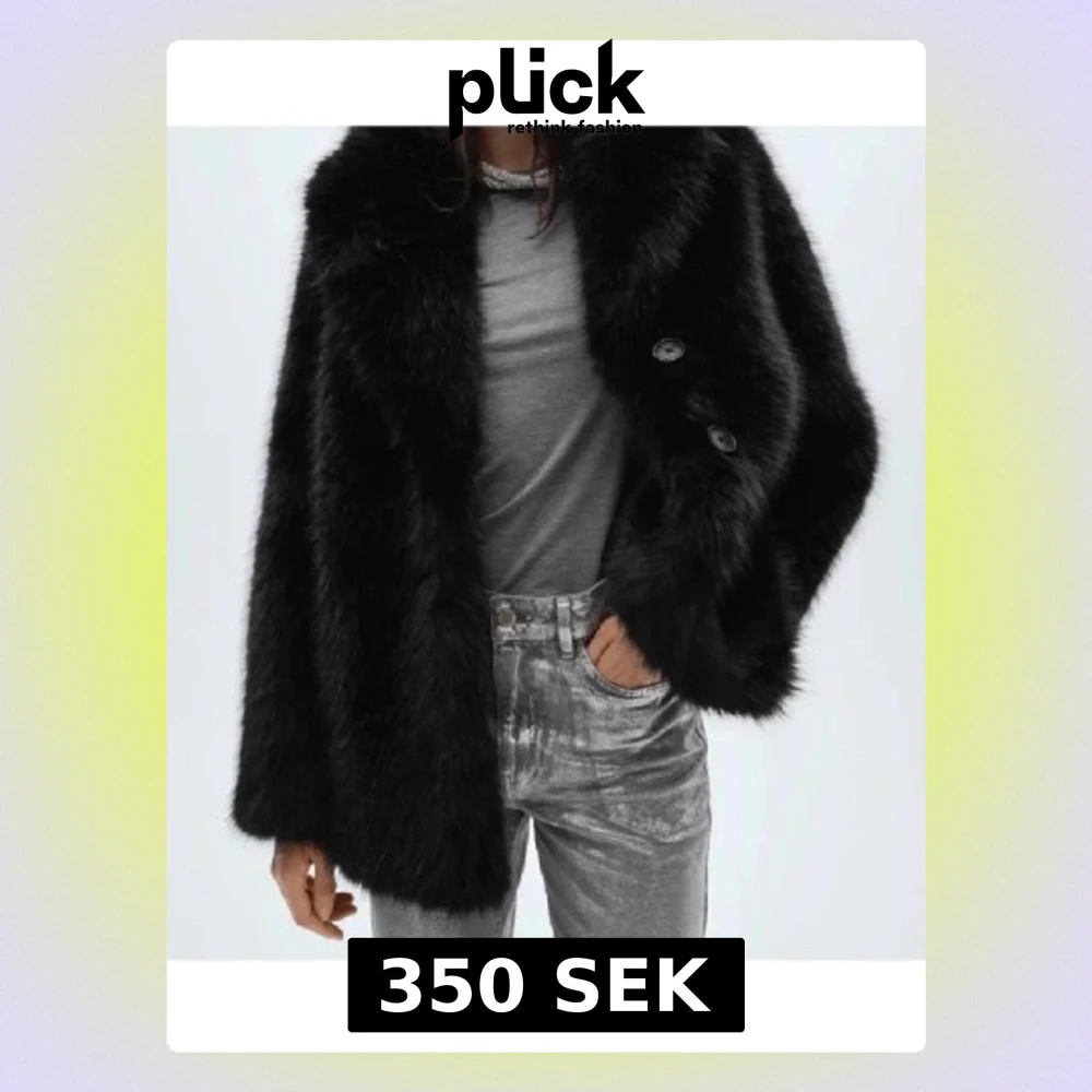 Säljer en svart pälsjacka med bred krage och stora knappar framtill. Fin, mjuk päls och man håller verkligen värmen i denna jacka! Köpt från mango 1 år sedan, använd vid 4-5 tillfällen. Nypris 1.499:-