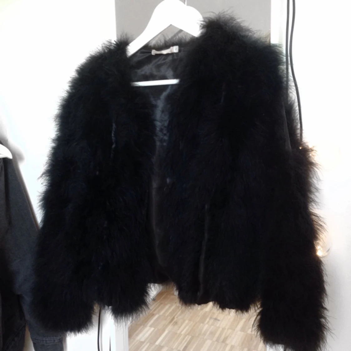 Säljer min fina pälsjacka som aldrig längre kommer till användning, det är äkta strutspäls, nypris: 1700 köpt på miinto.