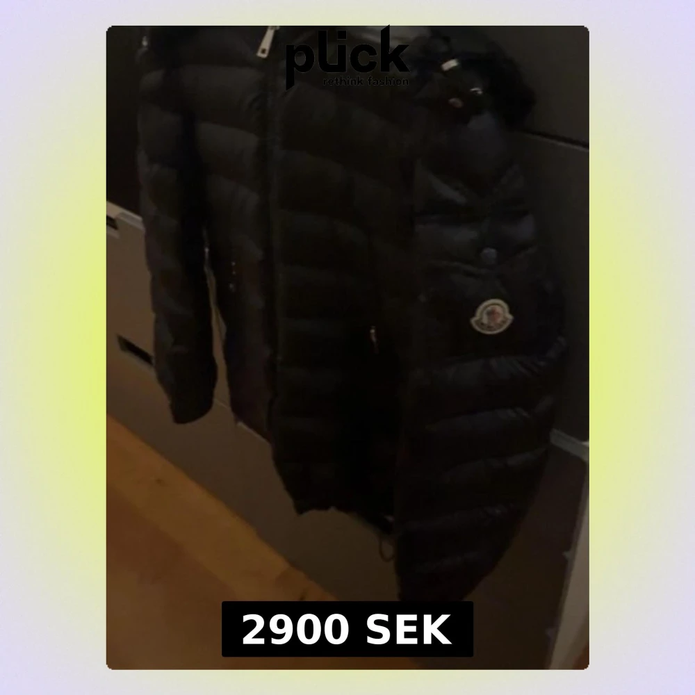 Säljer en svart pufferjacka från Moncler med klassisk logga på ärmen. Jackan har hög krage, dragkedja framtill och två sidofickor med dragkedja. Den är quiltad och har en snygg, modern look som passar perfekt när det är kallt ute.