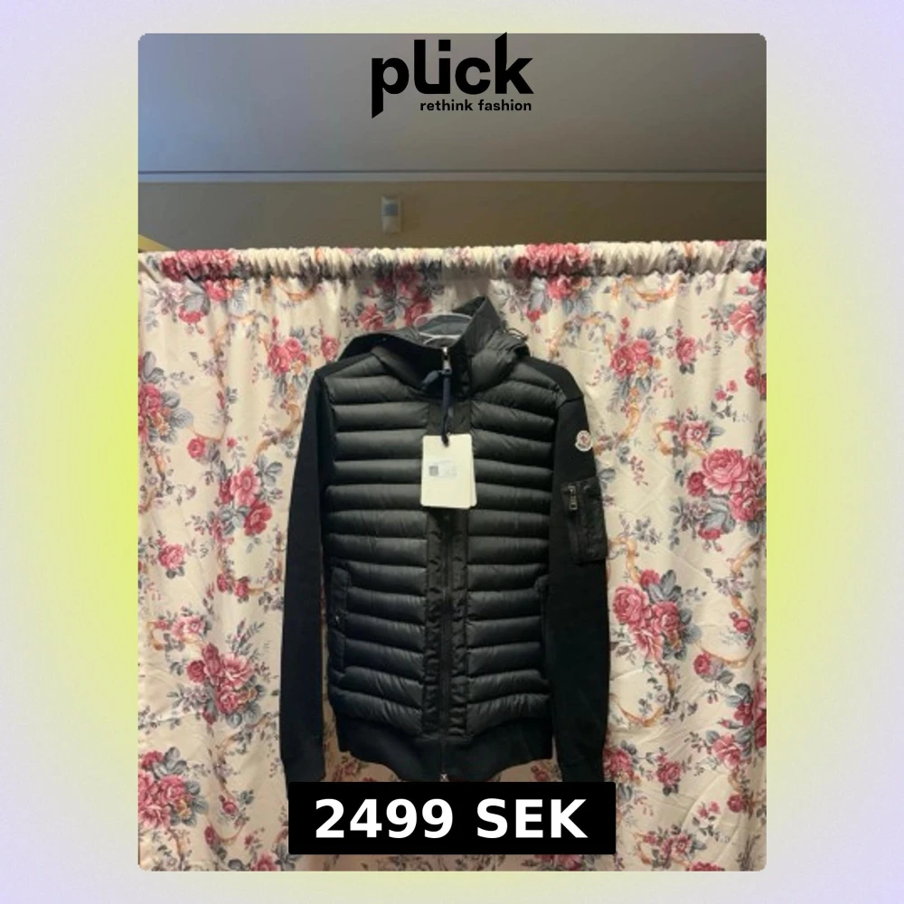 Säljer en svart cardigan jacka från Moncler med vadderad framsida och huva. Jackan har dragkedja, ribbade muddar och en ficka med dragkedja på ärmen. Klassisk Moncler-logga på armen och stilren design som funkar till allt.