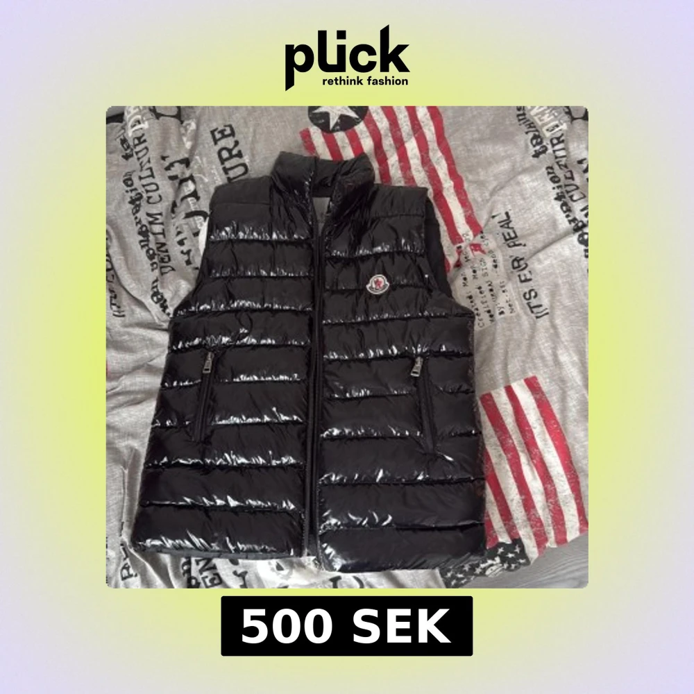 Snygg svart dunväst från Moncler med glansig finish och klassisk logga på bröstet. Västen har ståkrage, två dragkedjeförsedda fickor och quiltad design. Perfekt att slänga över en hoodie för extra värme. Stilsäker och tidlös look.